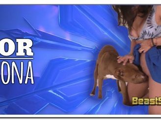 Fortunately – like Puss in Boots – Kujo is also Latin. His powers of romance extend beyond his physical boundaries. He courts the Lady like Zorro might, a little taste of her flower, then kisses her along the neck. Instinct shows Kujo how to excite a Lady, Alexandra reacts positively to his doggy powers of seduction. Seems those buttons push both ways. The Lady is clearly aroused by this afternoons delight, and is keen for nature to take Her course. Again, look closely at the expression of delight as Kujo mounts; unsure what this is going to feel like, our Hero drives home, and Alejandra likes what she feels. I always love that moment – one second, a Lady has a vagina. The next, she has a vagina that has been penetrated by a dog, knows what it feels like to have a dog inside her. And everything that means, within her own personal Universe. Alejandra is digging this. I would be extremely surprised if “how have I not been doing this forever?” did not drift through the Ladys mind. I would also be extremely surprised if this is the last doggylove the Lady brings into her life, one way or another.