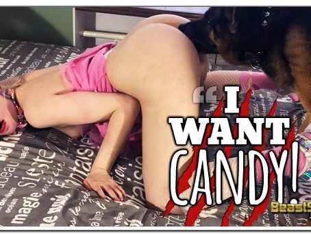 Having been wooed and kissed, then dog fucked deeply, her vagina injected with Gunner’s canine cream – our Hero withdraws. Finally, Tiny gets the sweet red candy cane she wanted from the start. Seems our young Petster has a sweet tooth, the way she is suckling on that doggy candy getting all sticky and juicy. Hell I do believe she even has a little drink here and there. Well you know those Pet Girls – they all want candy ?