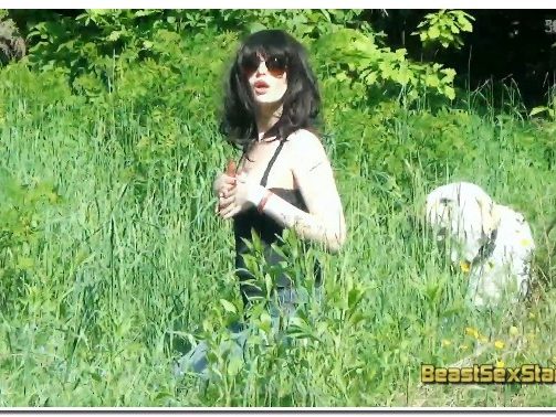 She took a blanket and made a really great day for herself and Brian. After a sweet game of stick throwing, she spread the blanket, letting him know what she wanted. He understood and then he started sniffing her, trying to hump her. She took off her pants and let him sniff and lick her. This is such a wonderful feeling, his coarse tongue on her sensitive clitoris. She positioned her body, in an attempt to make his tongue go into her pussy as deep as possible.